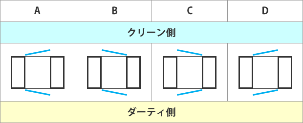 天井吹き仕様、吹出し口(パンカー)の数、扉の勝手方向などお客様の要望に合わせた設計が可能です。